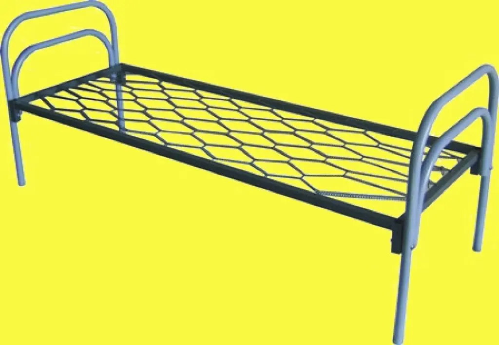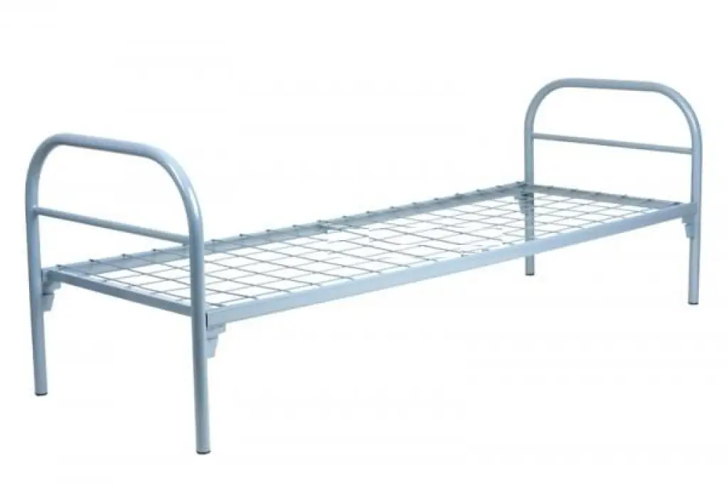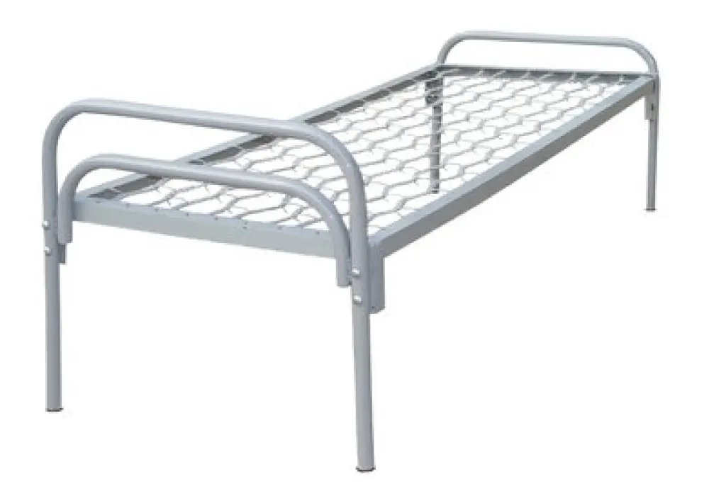 - одноярусные и двухъярусные металлические кровати; - кровати металлические с деревянными спинками; - металлические кровати с сеткой из прокатной пружины; - металлические кровати со сварной сеткой; - армейские кровати для военных казарм.